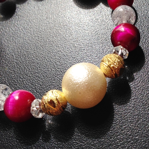 ピンクタイガーアイとの組み合わせで可愛く仕上げました。