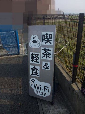 ①現状、この状態から開始でした。どうしたら良いのかと・・・。②清掃完了土台の錆取、台車修正、旧ステッカー剥がし、洗浄清掃。この後土台部分の塗装。③完成。ステッカー作成と貼り付け。設置?も。④施設案内板と入口案内、施設入口案内用。下板とステッカー作成と取付