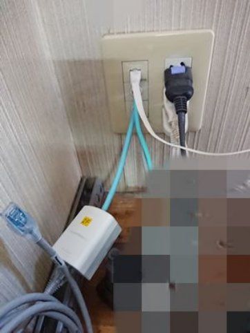 既存住宅。1階~2階2箇所。隠蔽配線。壁面穴あけ加工。フレッツ光より無線LANが安定しない為、有線LAN配線ご依頼。1階ONUより2階2部屋へ独立配線。配管と2階天井裏から壁面へすべて隠蔽工事