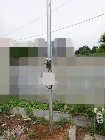 壁面に防水BOXを設置し漏電ブレーカー取付。倉庫内にLED照明器具とスイッチ、電源コンセント設置