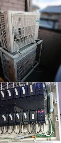 旧ダイキン社2室マルチエアコンがコンプレッサー及び冷媒関連の故障で、修理費が約17万円の為、2室とも単独品に交換。ダイキン社は200V外電源なので、分電盤100Vの切り替えと100V用電源コンセント交換。