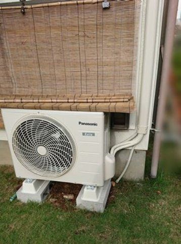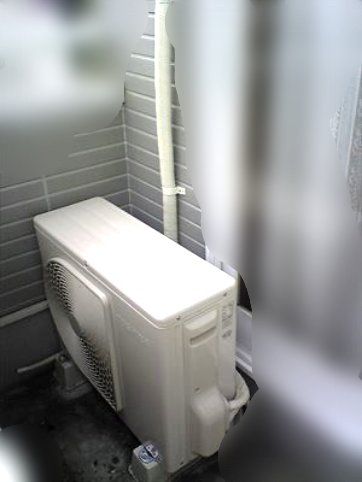③新室外機(整地。ドレンホースに防虫キャップ取付)ドレンホースの先端に虫よけキャップを取り付けえていましたが、ごみ付着の為、定期的に除去をしないと詰まります。数年前より取付を辞めました。2025年現在